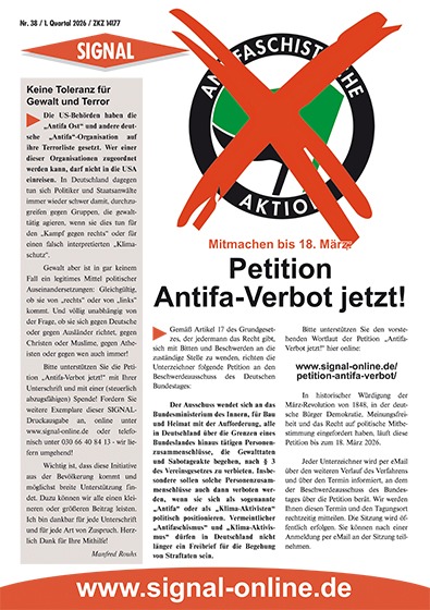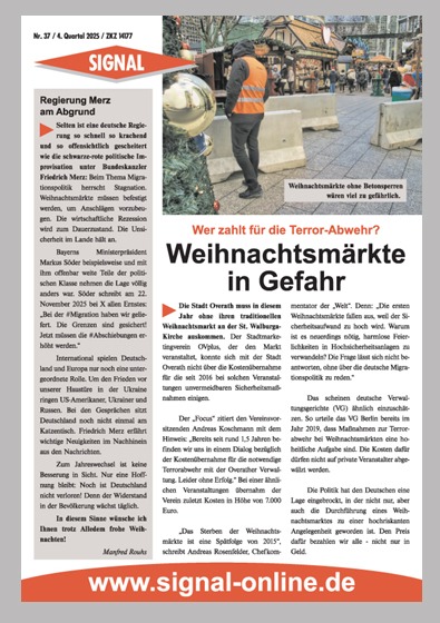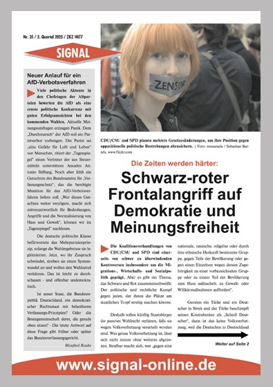 SIGNAL bringt Nachrichten, Berichte und Informationen, die Sie sonst nirgendwo finden. Bitte das Vorschaubild anklicken, um die PDF-Version zur Online-Verbreitung aufzurufen! Und als Druckschrift zur Weitergabe anfordern!